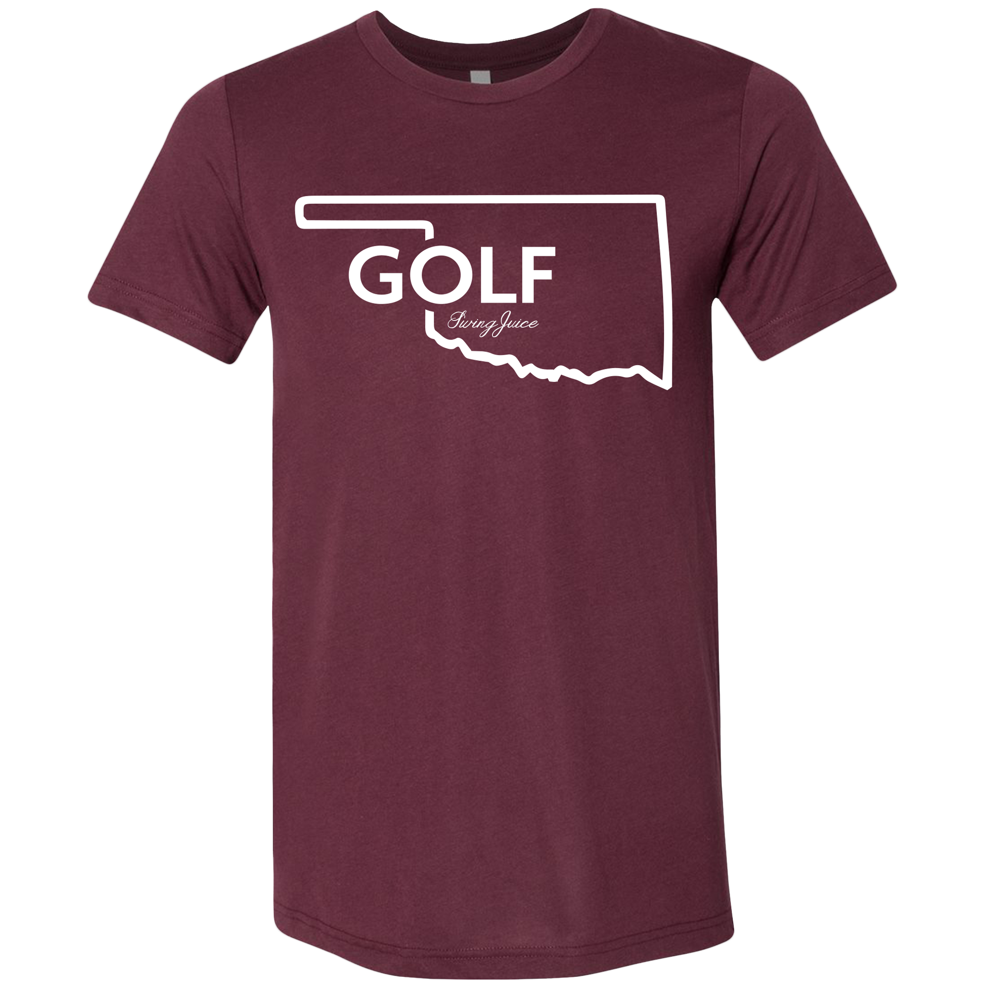 Celebrate the Sooner State with the Golf Oklahoma Unisex T-Shirt. Featuring an outline of Oklahoma, this tee from our States Collection is made from a high-quality triblend, ensuring comfort and style for any casual day.